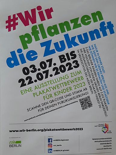Beide Plakate sind nun in der Ausstellung bis zum 22.07.23 im ALEXA zu bewundern. Unter diesen Plakaten wird in dieser Zeit noch der Publikumsliebling gesucht. Für den Favoriten kann unter www.pollunit.com/polis/plakatwettbewerb2023_publikumsliebling oder QR-Code abgestimmt werden. Unsere Plakate haben die Nummer 107 und 108.