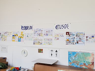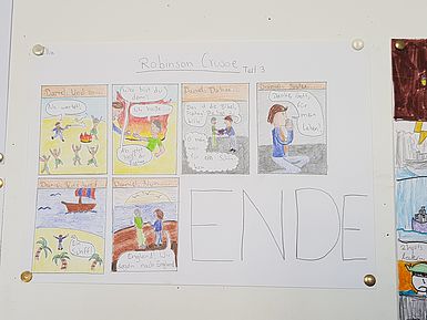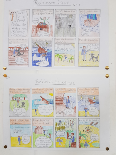 Der Abenteuerroman Robinson Crusoe war das Thema der Klasse 6ie. Sie haben dazu unter anderem Comics gezeichnet, Memorys gebastelt und Schätze gesucht.