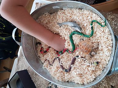 An einem Januarvormittag hatten wir ein Projekt des Jüdischen Museums: Es ging dabei um die Geschichte der Arche Noah aus dem Alten Testament und um den Aufbau einer Arche, mit einem Schutzdach gegen den Regen.