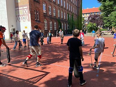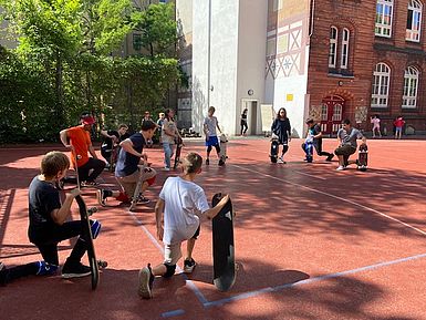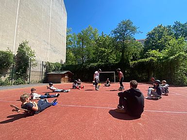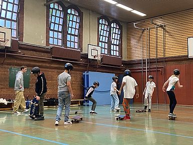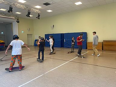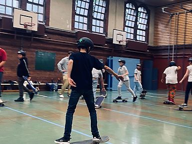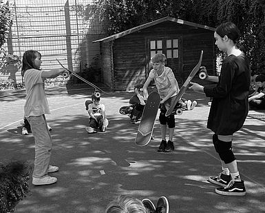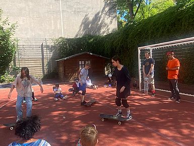 „Wir haben bei Dance on Boards eine Woche lang Tricks und Skateboardfahren gelernt. Unsere Trainer waren Mori und Tibi. Sie haben uns die Sachen beigebracht. Uns hat das Projekt allen viel Spaß gemacht.“