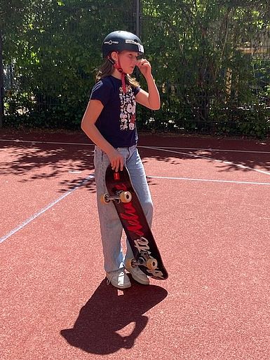 „Es war eine schöne Woche. Wir haben alle Skateboardfahren gelernt. Die Trainer Mori und Tibi waren sehr freundlich und hatten Geduld. Man ist auch hingefallen, aber man hat nicht aufgegeben.“