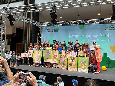 Mit großem Spaß haben wir an unseren Plakaten gearbeitet. Wir haben sechs Plakate mit unterschiedlichen Ideen zum Thema eingereicht und uns riesig gefreut, dass wir unter die 8 Finalisten gekommen sind. Am Montag, den 03.07. waren wir dann bei der Preisverleihungsparty im ALEXA dabei. Wir waren sehr aufgeregt und gespannt, welches unserer Plakate einen Preis bekommen würde.
