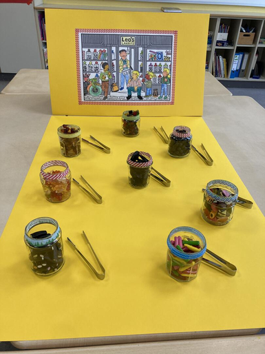 In der Klasse A1 konnte man sich zu den Leserätseln des Ratekrimis "Die Lakritzbande" den Kopf zerbrechen und als Belohnung im Lakritzladen bedienen.