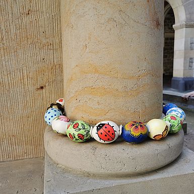 Am Dienstag, den 15.05.24 haben wir mit der Klasse 5ic den Osterbrunnen bewundert. Begeistert waren die Schülerinnen und Schüler von den Flaggeneiern, auf denen in den jeweiligen Sprachen "Frohe Ostern" gewünscht wurde. Eifrig wurden die selbst gestalteten Eier gesucht. Die Freude war groß, als sie gefunden wurden!