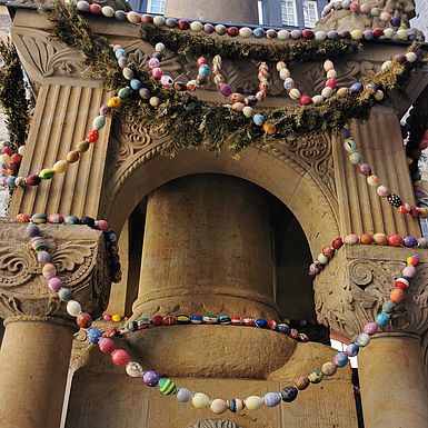 Zu Ostern wurde der Osterbrunnen im Hof der St. Marien Kirche in Berlin Kreuzberg von fleißigen Händen geschmückt. Bis Pfingsten konnte man den Osterbrunnen bestaunen.