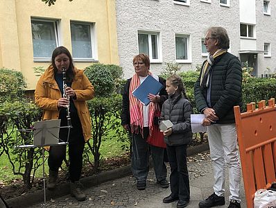 Es war echt besonders. Unsere Klasse ist mit der U-Bahn hingefahren. Danach ging es zu Fuß weiter. Als wir ankamen, standen schon viele Leute dort. Meine Freundin Luzie sagte mir, das sind Nachbarn. Eine Frau hat ein Lied auf einer Klarinette gespielt. Das hat sich sehr schön angehört. Der Mann, der das alles organisiert hat, hieß Didier Eisack. Er hat eine Rede gehalten und uns dabei sehr gelobt. Es war interessant. Luzie durfte dann vorlesen, was auf dem Stolperstein stand. Dann kam ein Mann namens HP. Er hat den Stolperstein eingesetzt.